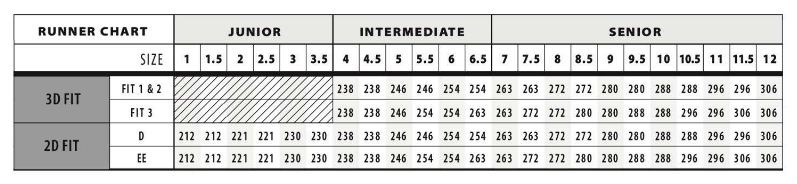 Таблица соответствия размеров коньков