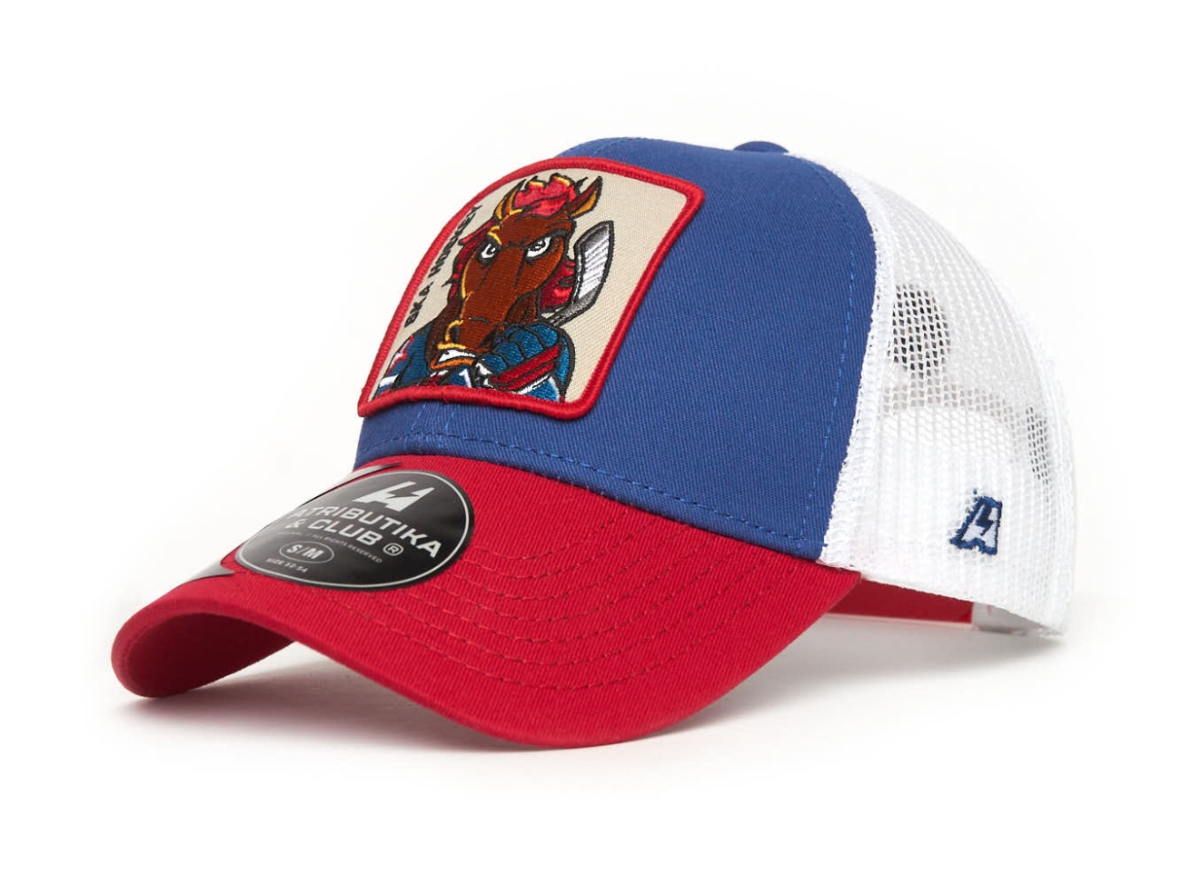 Бейсболки классической формы, с сеткой. Спереди располагается шеврон из ткани с вышивкой талисмана команды.