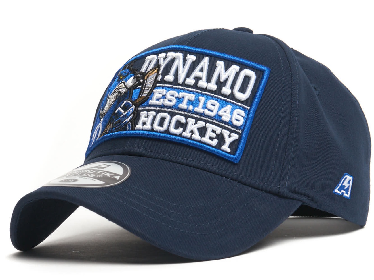 Элементы: объемная вышивка логотипа команды или полимерный шеврон, металлический фиксатор с логотипом.