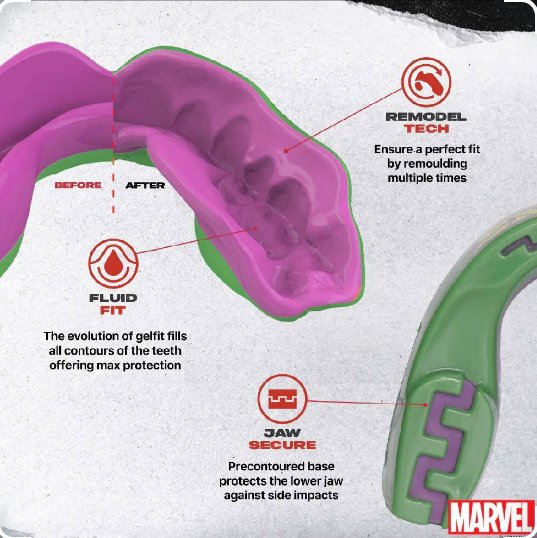 капа SAFEJAWZ спроектирована для применения во всех видах спорта, при этом достаточно низкопрофильная, чтобы не беспокоить владельца, благодаря двум слоям нашего запатентованного материала FluidFit ™ двойной плотности и возможности многократной переформовки благодаря RemodelTech ™.