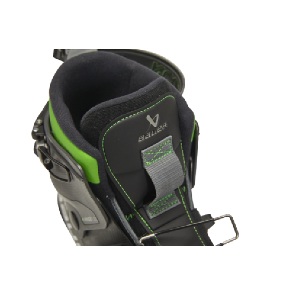 Верхний ремень POWER фиксирует щиколотку, обеспечивая гибкость HINGEFLEX, а нижняя пряжка оттягивает пятку назад, обеспечивая превосходную фиксацию.